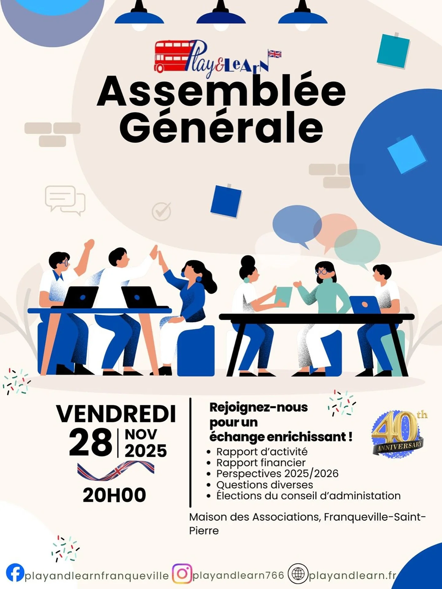 Depuis 1985, Play & Learn, situé à Franqueville-Saint-Pierre près de Rouen, est une association qui dispense des cours et des activités en anglais pour tous les âges et niveaux.